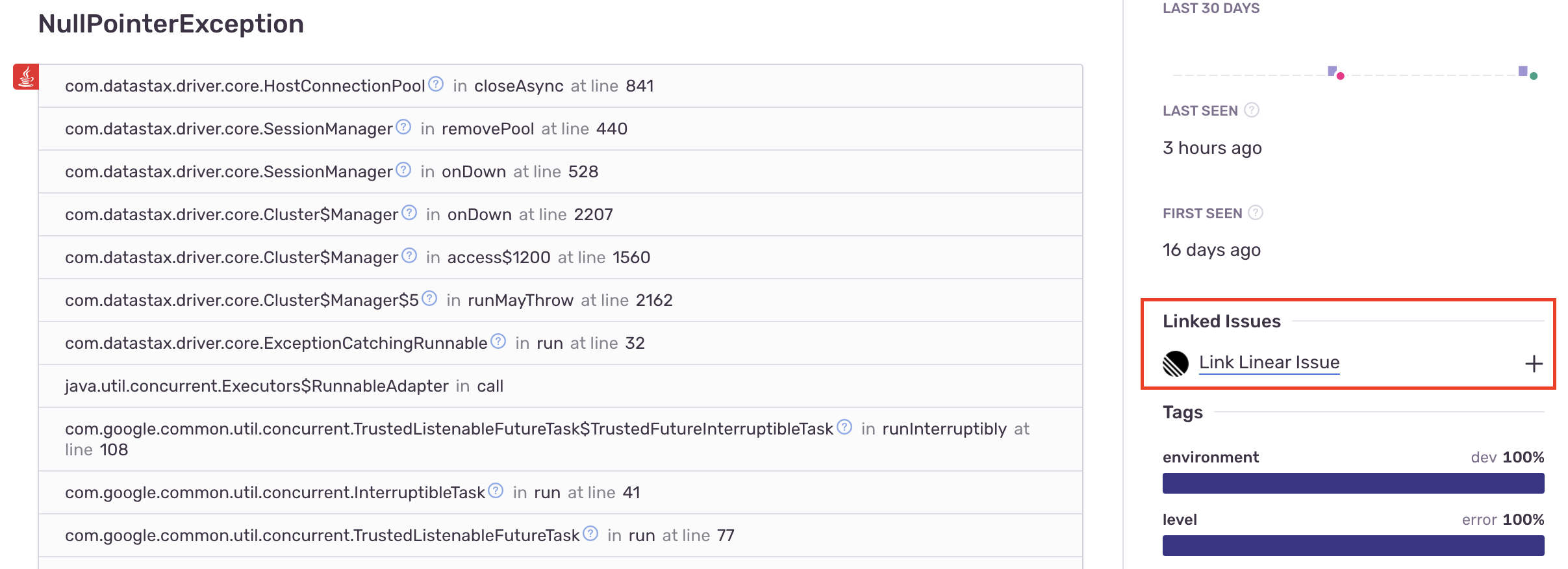 Learn more about Sentry's Linear integration, which streamlines issue creation and linking.